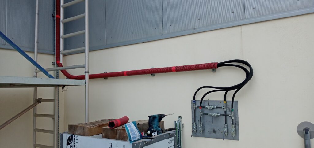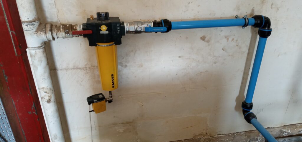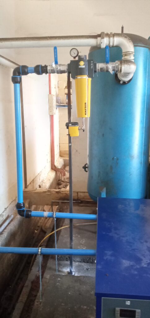 As part of the project we had to design and install new pipework, various pressure regulators, Pressure relief Valves (PRV), water separators, outlets, isolation valves, filters, automatic draining valves, pressure gauges and laying of armoured electrical cables.