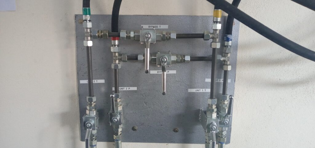 Furthermore we’ve designed and fabricated a cross over system where in case of failure in one of the pumps the pump next to it can operate the platform of the failed HPU to reduce down time and late fees on our clients.