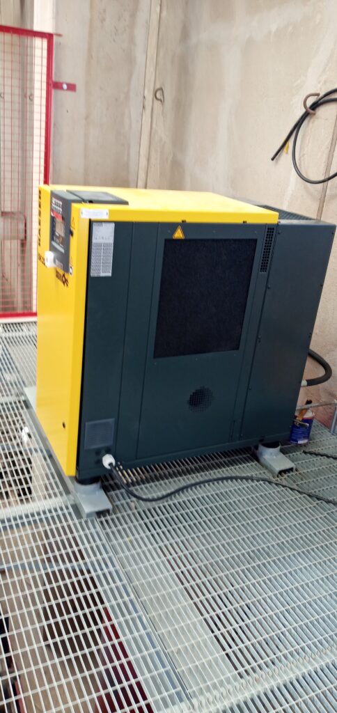 During this project our company was entrusted to install 3 brand new screw type compressors, and an air dryer in a concrete casting plant. The compressors where an addition to the plant’s existing ones which where located in a designated room, while the ones we’ve installed where positioned around the plant, with one of them on a platform above ground at 3.5m height.